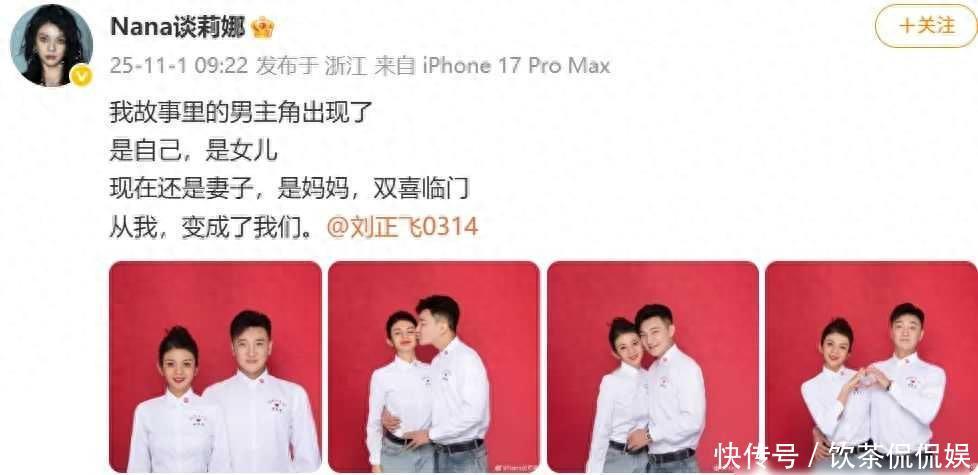 谈莉娜官宣婚孕,娱乐圈沉默,她却活得清醒2025年11月1日,谈莉娜在社交平台上公布了结婚和怀孕的消息,还附上了她与丈夫刘正飞的婚礼现场照片,其实早在十月初网上就流传出相关视频,但谈莉娜一直等到一个月后才正式发布,这种慢一拍的节奏挺有意思,很多人认为女艺人应该抓住时机趁热打铁,可谈莉娜更像是想明白了才对外开口。